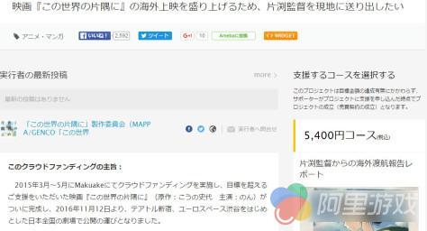 好评上映中的动画电影《在这世界的角落》将在英、法、德、墨、美等15国上映,动画官方再度开设众筹,募集资金,供监督片渊须直前往上映的各国“远征”。