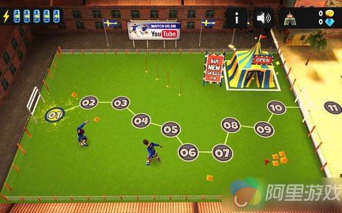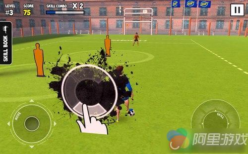 好了,踏入球场之后让我们踢球吧!不,在正式开始比赛之前,我们还需要一些锻炼。游戏目前共有50个关卡,其中前十关大多为游戏的操作教学,从简单的操作、过人技巧、射门到复杂的移动、带球练习逐步深入,让玩家体会到足球的各类动作怎样以游戏的方式呈现出来,这也是游戏最为精彩的地方。虽然还是常见的虚拟摇杆加功能按钮,但是这里的球手操作起来可没有那么简单。