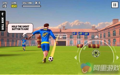 在教学的章节中,我们要数量的掌握过人、带球移动这两个进攻中的常用操作。当玩家用虚拟摇杆控制角色移动的时候,球员的移动并非是直接设计成直线移动,会因为带球的关系导致移动的方向不断改变,此时需要玩家及时操作来控制住球员的移动。屏幕右下方的按钮负责的是需要组合操作的技巧按钮。过人操作需要利用这里的组合操作,可玩性非常高。