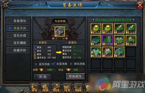 游戏的装备品质有白、绿、蓝、紫、金五种级别,不过也只有紫色和金色装备值得洗练,洗练后能获得更高的属性值。洗练有三种方式,金币洗练,元宝洗练和绑元洗练,用哪个方法视个人情况而定,元宝洗练和绑元洗练更容易洗出高属性值,但元宝可通过出售装备获得,因此推荐使用。