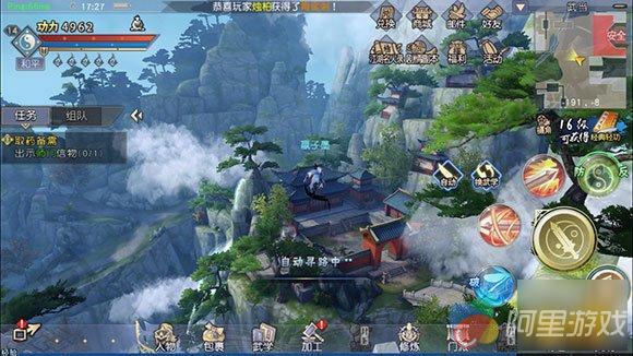 游戏的操作模式依旧是我们熟悉的虚拟摇杆和技能结合的方式,对新老手都十分亲切,容易上手。游戏的打击感也相当的出色,抑扬顿挫,带有模糊效果的打击画面加上打击音效,武侠人物在画面中划出一道道泼墨的招式,玩家们在采用自动战斗时,随时拉伸镜头,就好像在欣赏一部武侠大片一样。