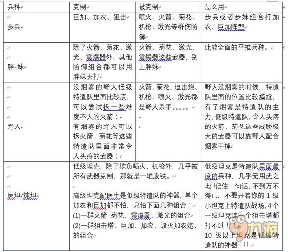 第二:知道兵种(15本以下)的特点和武器的克制关系