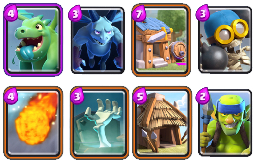 如果你嫌弃1费骷髅兵不强,可以尝试用2费的哥布林、还有投矛手,这是钟培生团队的最爱。