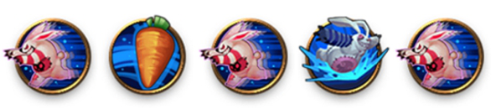唤醒萝卜必须要第一个施放,这个技能有特效能够降低敌人的法抗让其他的技能伤害增加许多。狂暴兔兔能降低敌人的移动速度,让波比扑击能够更容易的击中敌人。
