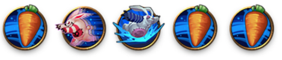 唤醒萝卜必须要第一个施放,这个技能有特效能够降低敌人的法抗让其他的技能伤害增加许多。狂暴兔兔能降低敌人的移动速度,让波比扑击能够更容易的击中敌人。