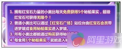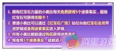 1.拥有红宝石力量的小奥比每天免费获得5个迷香果实,超级红宝石可以获得无限个