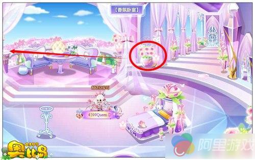 首先用第一关得到的喷头查到桌子上面的香水瓶中,就会散落一片花瓣到地面上