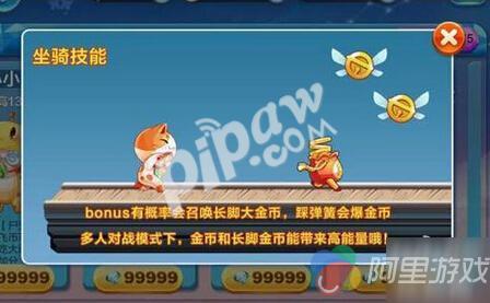 多人对战模式下,金币和长脚大金币能带来高能量哦。