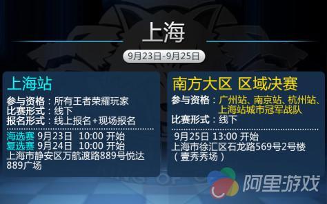 城市王者,战出你的荣耀!腾讯旗下第一MOBA手游《王者荣耀》第二届王者城市赛南方赛区上海站与南方大区-区域决赛即将先后于9月23日至25日打响!从广州站、南京站、杭州站、上海站中脱颖而出的冠军队伍将进入区域赛角逐,为区域王者而战!