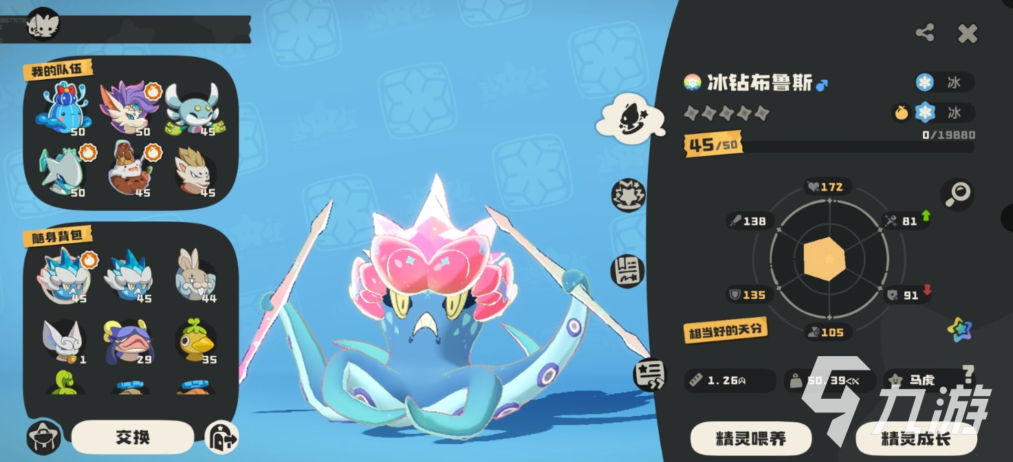 最终形态冰钻布鲁斯,在体型上有了重大的变化,体型更为庞大且通体呈现晶莹的冰蓝色,头部的钻状结晶闪烁着寒光,作为海滩附近的霸主精灵,有着很高强度的同时,还能提升玩家过水的效率,可以拖着各位过河,帮助各位更好的在水上行走,建议也是使用星星魔法先将这个角色击晕,之后使用火神音速犬等精灵一击必杀,这样才比较好捕获。