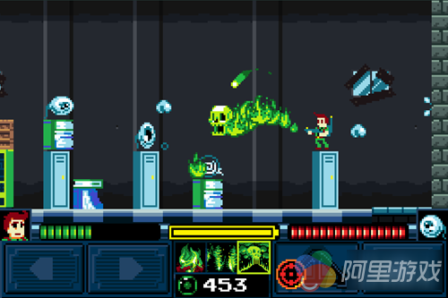 游戏中,玩家将操控“科学怪人”穿梭在光怪陆离的世界中时,与千奇百怪的怪物斗智斗勇,与BOSS近距离作战。操作非常简单,战斗时仅仅需要控制左右位移、跳跃、射击以及切换子弹四个按键,即使屏幕较小的手机也能轻松掌控。此外,玩家还可以利用游戏中击杀怪物后收集到的能量购买/升级更多风格、威力不同的子弹,对付不同特点的怪物。