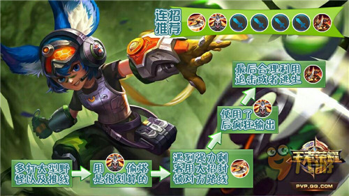 , 前期尽量抢2级,直接用平a和技能推线,这样由于等级优势你可以轻松把对面压在塔下,然后利用风刃poke消耗,间隔再点下塔。注意控蓝,不要随意乱丢技能,最为直观的是经济和等级的差距,期间稍微留意地图防备打野。