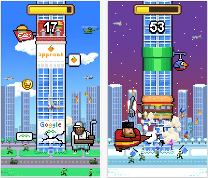 这款小游戏非常有魔性,也特别简单粗暴,就是用巨人主角拳击高楼,并且躲过各种障碍,有点像最初的猴子爬藤条的那种游戏,特别适合无聊的时候玩一下或者气愤郁闷的时候发泄一下。
