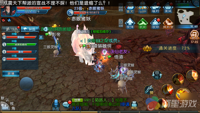 《诛仙》手游继承端游,采用了任务和活动并行的玩法,任务包括主线、支线以及日常的跑环任务。而活动则有点像网游中的团队副本,能够保证玩家装备上的积累。并且随着任务的进行,活跃度系统的能量条也在不断的积累,达到相应的活跃度之后还可以获得很多商城道具。玩家可以通过自由匹配的方式寻找队友游戏,当然来几个好朋友一起玩也是个很好的选择。