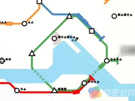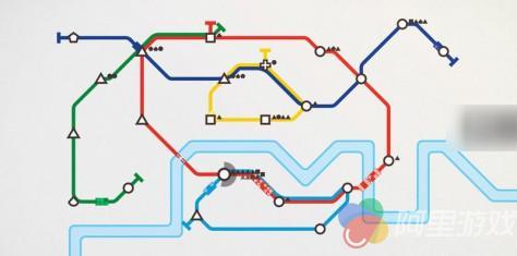 规划的首要原则自然就是避免将同类型站点连在一起,让列车始终处于“能上能下”的状态,避免一部分车站爆点而另一部分车站空无一人的情况出现。此外,一条地铁的宏观规划要尽可能形成环线,即始发站和终点站为同一个站点,跑圈状态下的列车就不会把宝贵的运行时间浪费到直线状态下的“折返跑”运动之中。最后就是对枢纽站点的运用,我们知道地铁和火车的一个显而易见的区别,就在于地铁线路的相对独立性。虽然游戏中的一条轨道无法穿过另一条轨道,但如果在二者的交叉点设立枢纽站,就能减少乘客的换乘次数,从而能极大提高列车容积的利用率。需要特别指出的是,线路规划并没有任何限制,任意两点之间均可进行,但在穿越特殊地形时所需要的桥隧建设作业,依然依赖于游戏奖励,并且相关的工程项目完全是随机的。