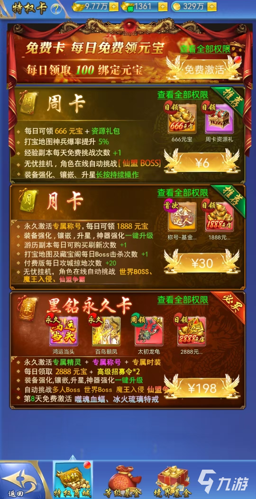 角色的战斗能力也会更加的强悍,那么神戒包含的是神光无畏戒,还有蛮牛金刚戒以及幻影云母戒等等,解锁的方式都是不同的,首先是玉清,后续隔一天就会解锁相应的内容,那么有两个是额外的,比如说冰火琉璃戒还有噬魂戒,除了等到指定开服天数之后,玩家们也可以选择通过激活特权卡的方式来帮助自己更好的进行获得这两个在后续pvp作战中有着非常突出的表现,还可以帮助玩家们快速的冲刺排名,提前拿到手。