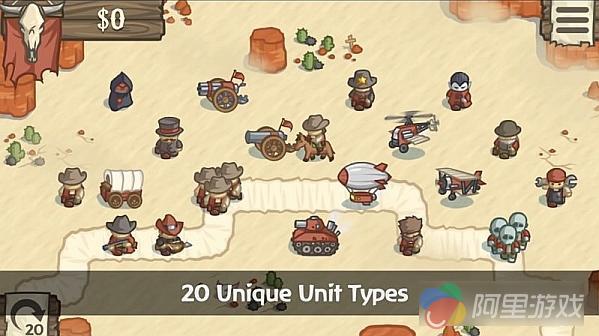 在视觉效果方面,《失落的边境》很容易让人想起很多 Mika 原来的作品,诸如《战斗之心》或者《僵尸小镇》,它拥有 Mika Mobile 著名可爱的小卡通艺术风格,狂野的西部环境的细节刻画相当细致,动画效果流畅顺滑。在游戏中,色彩的搭配丰富并充满活力,而舒缓的吉他曲,让你幻想觉得自己真的生活在这片旧时代的美国西部土地。