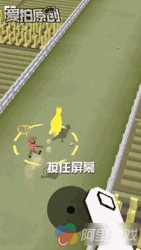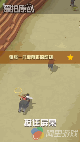 进入游戏后是选择人物,牛仔在我的印象里一般都是男牛仔居多,但这次可以选女牛仔倒让我有些意外!不过,我还是选了一个穿着粉色衣服的男牛仔,骚包吧?要得就是这样的感觉!接下来就是新手教程,按照提示一步步来就可以了。点击屏幕,牛仔就开始自动向前奔跑,松开手指牛仔手上的绳索就会出现一个黄色的圈,当野马在圈的范围里,再次按住屏幕,牛仔便成功的套住了马,变成了骑着马向前奔跑。不断向前奔跑的过程中,还可以看到其他野马从身便跑过。此时只要重复之前松手、套圈、按住屏幕的动作,就可以换到另一匹野马身上。