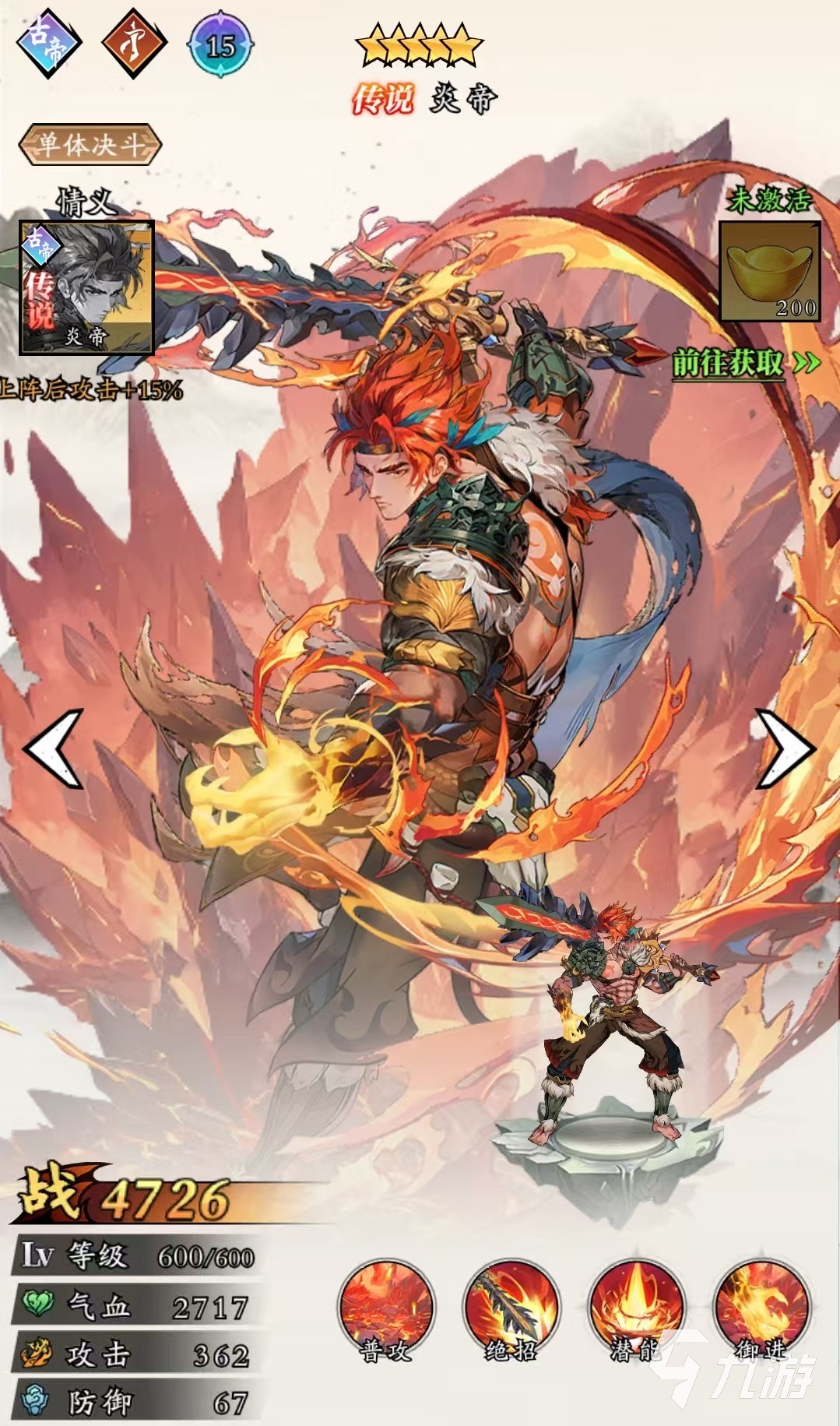 在目前古帝阵容中,小编认为排名第一的当属炎帝。炎帝的绝招攻击敌方单体目标造成高额伤害,在使用技能前,炎帝可以根据自身的怒气值,获得额外的可累加效果。当怒气值大于等于5点的时候,暴击伤害提升50%,怒气值大于等于7点,暴击提升50%,怒气值大于9点时,能无视部分防御和伤害减免效果。所以说满怒状态下的炎帝,有着极强的单体输出能力,场上的绝大多数目标都可以一击必杀。