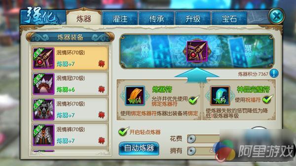 所以推荐大家前期用送的绑定炼器符先弄一套5的装备用着!至于不绑定的炼器符,平民提升道法就全靠它了!直接全部拿去摆摊出售,最少1000金币一张!