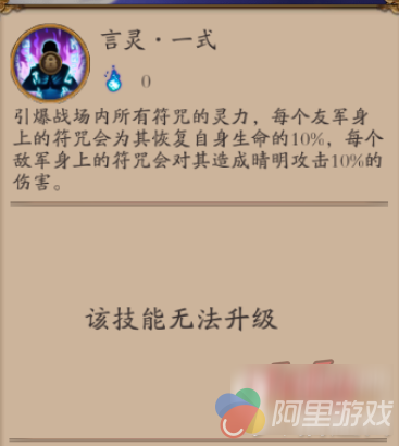 这个技能是一个不需要升级的技能,根据效果来看需要配和晴明的其他技能发动,这里提醒一下,晴明普通攻击满级后的附带的DEBUFF可以被这个技能引爆,这个技能使用后会清除原先的符咒技能的效果,而且收益非常少,回血10%以及晴明攻击10%的伤害,相比于符咒技能的效果,这个技能可以说非常的白痴,只有在你实在是缺奶的情况下才考虑携带,当然到了后期式神血量上来以后,说不定就有新的效果了。