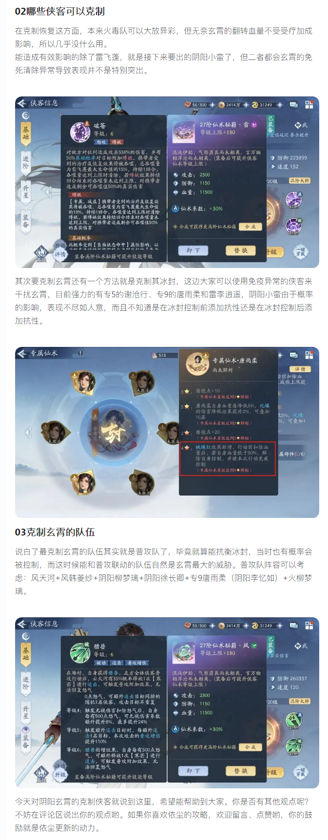 玄霄这个卡在竞技场我个人觉得没什么优势。。。所以这里就不多说了。。。