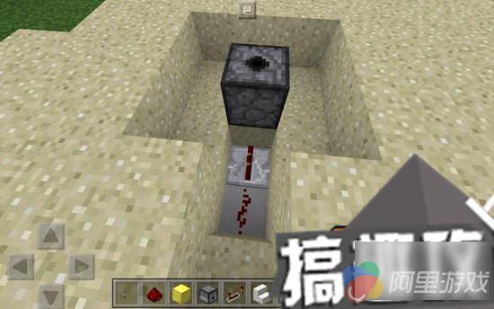 在发射器下两格放置红石线路、红石中继器,如下图: