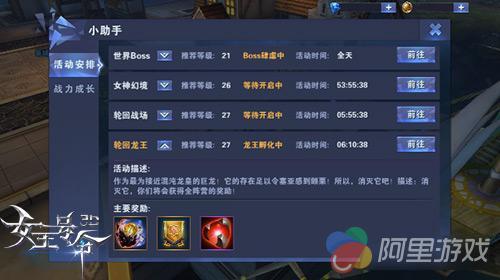 作为实力直追混沌龙皇的存在,《女王号令》当中的轮回龙王BOSS自然极其强悍。因而建议勇士强者们等级在27级或者以上,再前往参与轮回龙王BOSS的“围剿”行动。而在击杀BOSS的时候,勇士强者们也要提防敌对阵营的强者前来偷袭抢夺!