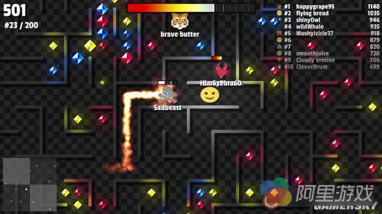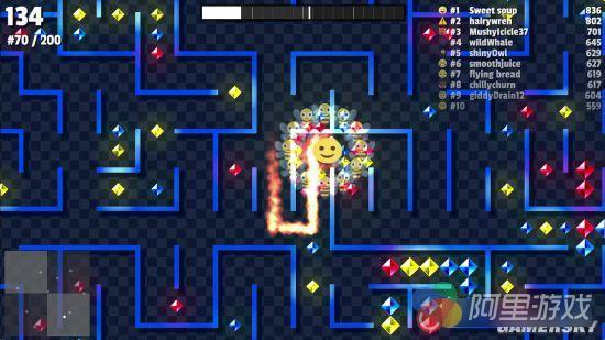 而当玩家吃掉特殊的宝石的时候,便可以吃掉其他表情。值得注意的是,本作是一款网络游戏,其他表情并非是AI,而是货真价实的玩家。