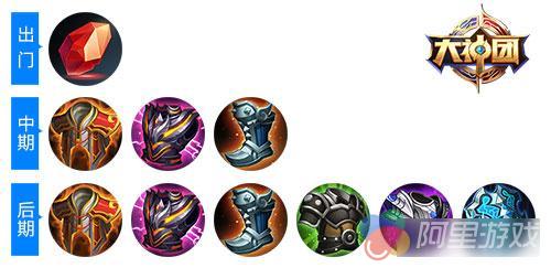 后期装:反伤刺甲、红莲斗篷、影忍之足、振兴之凯、不祥征兆、霸者重装