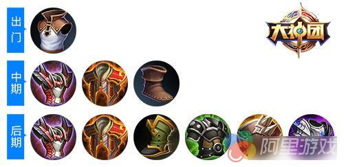后期装:红莲斗篷、影忍之足、振兴之凯、血魔之怒、军团荣耀、贤者的庇护