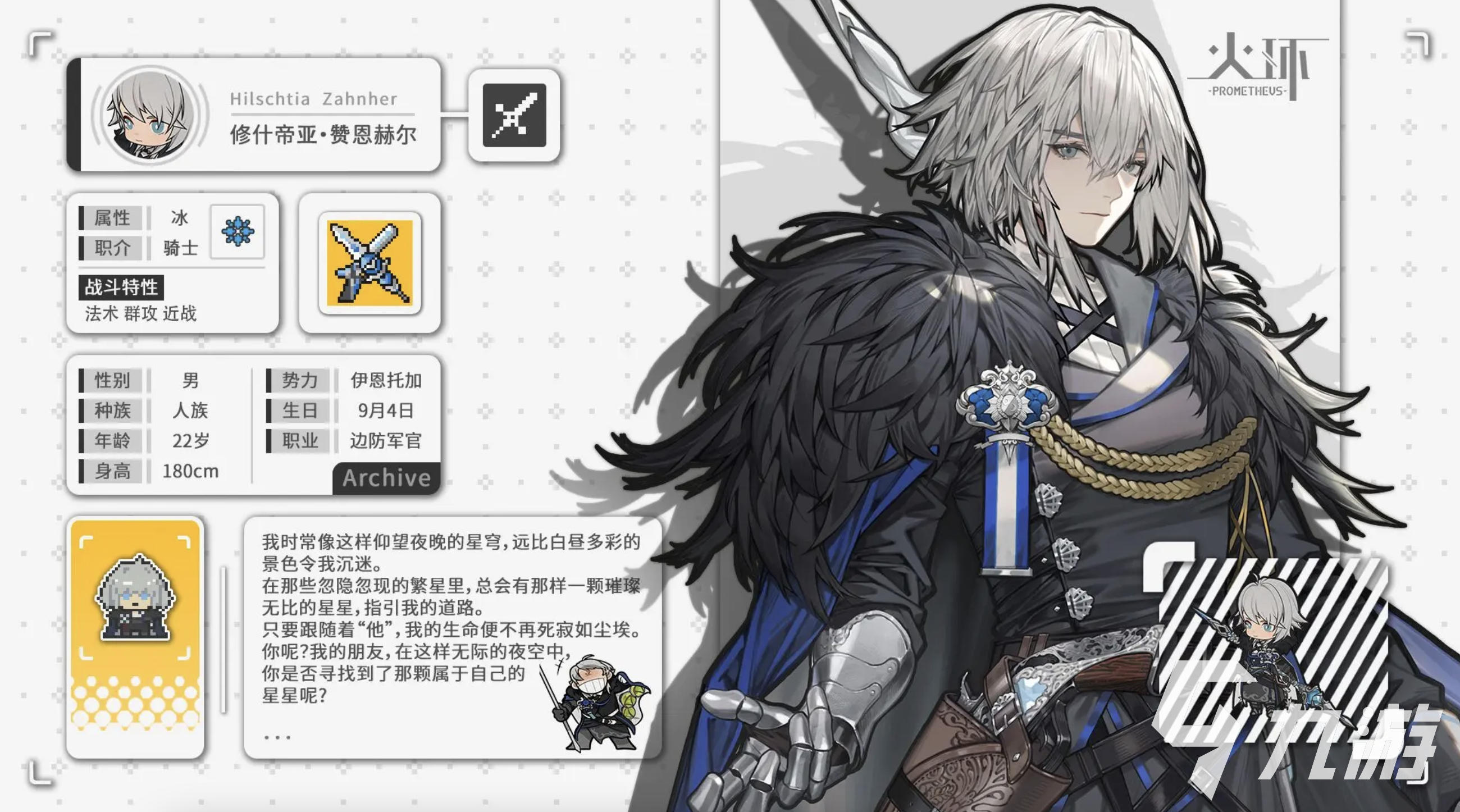修什帝亚是游戏里的一个冰属性角色,角色在游戏里的类别为骑士,擅长使用各类法术攻击,这个角色在游戏里属于五星角色,是战斗能力比较强的一个,整体的敏捷速度比较高,生命值也很优秀,但是战斗力和防御能力会稍弱一些,这个角色会有多个不同的技能,首先第一个技能名叫交响,角色会手持两种武器,一般角色会拿着长枪和铳枪,战斗的时候会用这两把枪交替攻击,一般会连续交替三次,能给对手带来230%的攻击伤害,角色的另外一个技能名叫北境啸鸣,一旦触发技能之后,角色就会直接召唤三名火箭兵,这个火箭兵会在场上存留6秒钟的时间,会在这6秒时间内自主对战,他们会自动寻找目标战斗,每次攻击都能带来53%的攻击伤害。