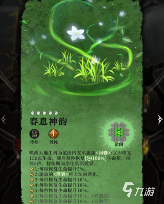 除了普攻外巴姆的概率反伤会给队伍中的的一些脆皮角色带来威胁,因此可以选择带好奶妈类英雄,或者治疗秘宝,来延长英雄的生存时间,比较说集回血和回能为一体的叶梢之舞,或者兼顾治疗净化的秘宝“春息神韵”。