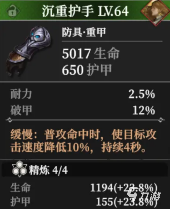 虽然角色没有强大的爆发技能,但单纯的用普通攻击已经能带来大量的伤害,玩家需要做的就是选择一些抵抗能力比较强的成员,并且给成员增加沉重护手这一防具,有了防具之后就能抵挡对方大量的攻击,为了降低对手的攻击速度,除了治疗类型的英雄之外,还建议玩家去携带一些秘宝恢复血量,只要能延长这些英雄在场上战斗的时间,有机会去抵抗更多的伤害,就比如使用春熙神韵,可以给队伍的其他成员都增加回春效果,能立即恢复150点的生命,在这个过程中还可以净化负面效果。