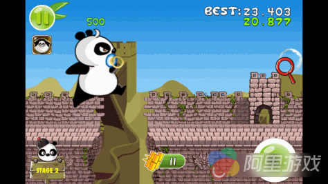 《熊猫屁王(MW Bamboo)》的游戏画面充满了浓郁的民族风格,游戏的背景选择了我们最熟悉的八达岭长城,看上去非常有亲和力,只不过这长城看起来非常的残破不堪,杂草在破旧的墙缝中疯狂的生长,仿佛很多年没有修缮的样子。想必潘玮柏一定没有真正去过中国的长城,如果亲自考察一番的话墙上一定会画上一些“到此一游”的涂鸦。