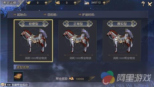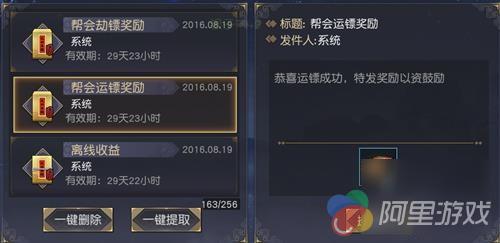 帮会运镖:护送时间内,成功将镖车送达目的地,则运镖成功,运镖帮会可以获得10000点帮会资金,参与运镖帮众可以获得100点帮会贡献,帮众个人奖励将以邮件形式发放