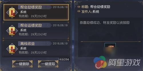 帮会劫镖:护送时间内,成功阻止镖车到达目的地或者镖车被摧毁,则劫镖成功,劫镖帮会可以获得10000点帮会资金,参与劫镖帮众可以获得100点帮会贡献,帮众个人奖励将以邮件形式发放