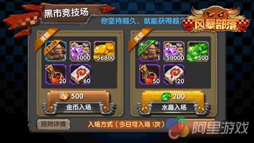 世界上没有免费的午餐,想要满足欲望首先得交下“买路钱”。在《风暴部落》中进入黑市竞技场的方式有两种,你可以交金币进入平民区进行挑战,如果恰好身上有足够的钱,可以使用水晶进入上流社会富人区,奖励当然也不是平民区可以比拟的,想要获得更多更丰富的奖励就来《风暴部落》体验一把吧!