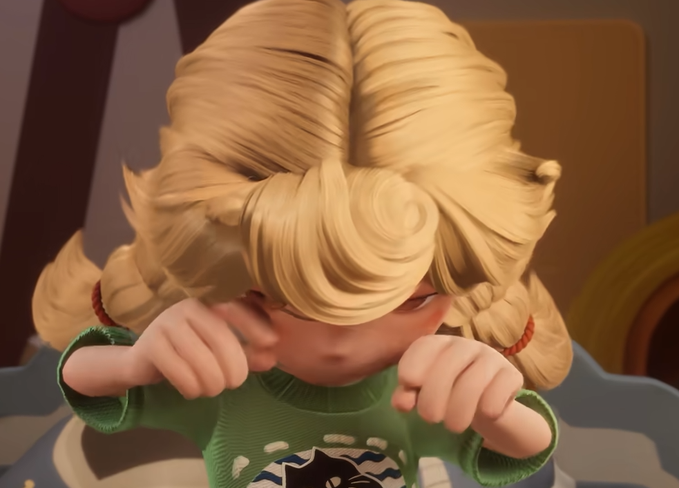 在进入游戏之后首先会有着一段剧情动画。这段动作制作的十分的精美,里面很多的细节都处理的很好。闹钟的铃声将我们给吵醒,在醒来之后发现我们周遭的物品都变大了,之后才发现不是物品变大了,而是自己变小了。
