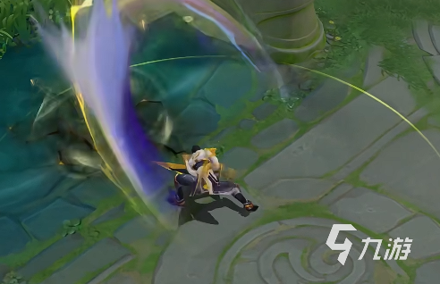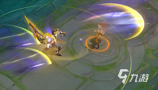 曹操逐霄之志皮肤其实还具备普通攻击技能,那就是直接向前挥动宝剑的时候会产生金紫色的剑气。剑气拖尾的效果其实也会比较好,他如果施展了一技能,那么将会跳动三次,全程都是金紫色。技能释放的时候还会带有独特的光效,二技能施展的时候能够有效的增强攻击范围。
