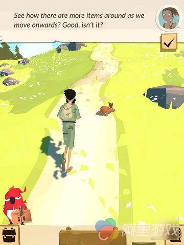 操作方面,游戏采用了第三人称视角并针对移动端的特性进行了优化,玩家可以仅靠一只手指在竖屏上完成所有游戏操作例如操纵角色移动,玩家只需要上下滑动控制人物行走的速度即可,人物会根据程序设定的路线进行移动,环顾四周只需左右拖动屏幕,拾取道具也是点击拖拽即可,操作简单易上手,玩家随时随地都可以掏出手机走上一会儿,相当符合游戏的休闲内核。