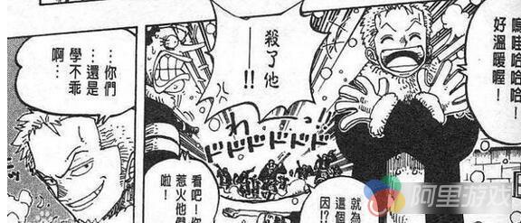 然而2年后重新集结之时,同样也有一个人想钓鱼却误上了海贼船,那就是索隆。不过索隆没有沦为奴隶,反而一刀把船砍成两半。虽然经历一样,但因为实力的天差地别导致了最后截然不同的命运。
