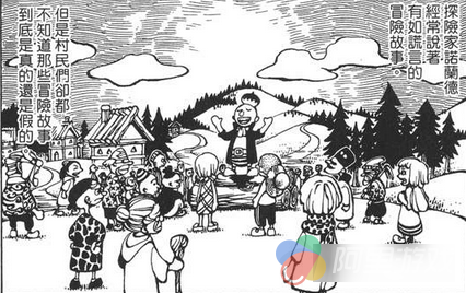 上面这张图是第292话空岛篇中关于罗兰度的回忆,冒险家罗兰度在给大家讲小人国的故事。而这个场景在之前的漫画中其实出现过。