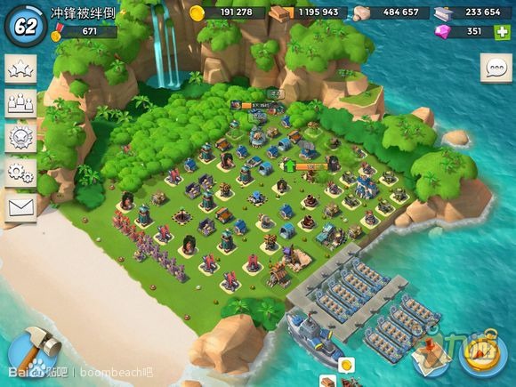言归正传,此玩法第一步目标,即升雷达开出10级20级哈莫曼,可根据网上攻略干掉他,很简单,没有什么硬件要求。博士将会是这种玩法的主要资源来源,顺带着攒掠压和能量雕像。你会发现,打过一两关博士,资源就够你用,完全不用撸玩家,甚至NPC(以后看情况撸)。资源岛嘛,无人的可以打下,有人的可以先放一边,金币宝贵,没事儿别赌气死磕。如果资源够,优先研究所,战舰,小船。小船首要目标11级。为何?方便用野人,否则升到10级用胖妹也行。另外,级别到了优先司令部。这个其它攻略里都有,可以去看看。