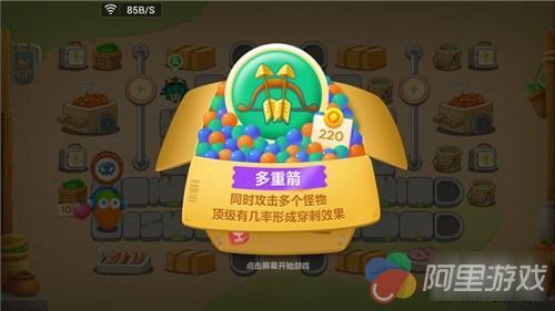 由于多重箭可以攻击很多层的怪兽,所以也可以清理障碍物。发射的方向是由内向外散开的,有点像我们在工厂模式时用的炮塔风扇。这就是在集市模式第十一关解锁的炮塔——多重箭,大家学会了嘛!