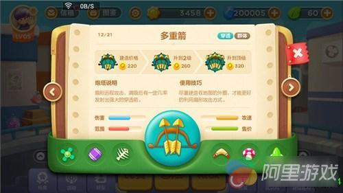 而且多重箭有一个特殊的功能,一支箭发射出去后,不会因为攻击一个怪兽后而消失,而是会继续前进!这就是这个炮塔的特点哦!对于一只怪兽时,炮塔会发射出一支很有威力的箭!