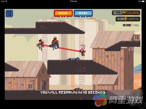 游戏采用了像素风格的画面设计,而且游戏是以横版作为表现形式,利用这样的一种视角,玩家可以更加方便的查看到场景中的情况,对于一款团队射击游戏来说,能够对于场上的战况和地形更了解可以在对战时获得优势。而游戏中的音效做的比较中规中矩,当战况比较激烈的时候听到不断传出的开枪的声音还是非常过瘾的。总之在声音与画面上游戏做的还算是合格的。