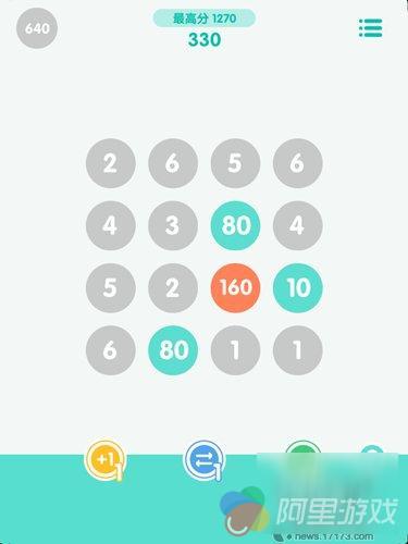 游戏中的道具一定要舍得使用,特别是数字变大之后,“+1道具”,可以让灰色棋子的数字提升,例如3+1,这样就可以与周边的6进行合成。还有随时排布所有的棋子,该道具可以用于上述遇到的情况,即当中间区域皆是大数字时,可以用来重新排列。