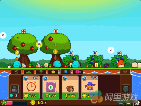 由于初始资金有限,我们可以种植一些简单的植物,比如胡萝卜、小果树等等,你可以将其安排在空余的位置,当然将其铲除换上更高级的植物也是可以的。当这些植物种植下去之后,随着时间的推移,果实慢慢长大甚至会掉下来,这时候我们的帮工就会自觉前往采集,不同的果实对应获得不同数额的金币,如果你嫌帮工动作慢的话也可以自己疯狂点击快速采集。