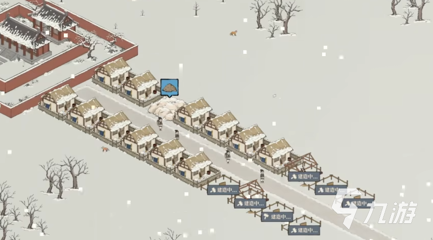3、住房上为了图人物模式快速加人口可以选择茅草屋、农舍两种住房即可,既可以加人口也没有那么多生活上的需求,注意的是需要把集市、水井、脚店等覆盖满足外卖需求。